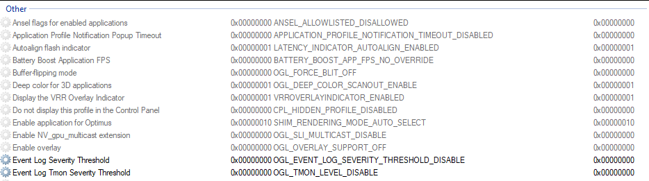 Качаем программу NvidiaProfileInspector[disk.yandex.ru]. Заходим в неё. Листаем вниз и видим параметры: