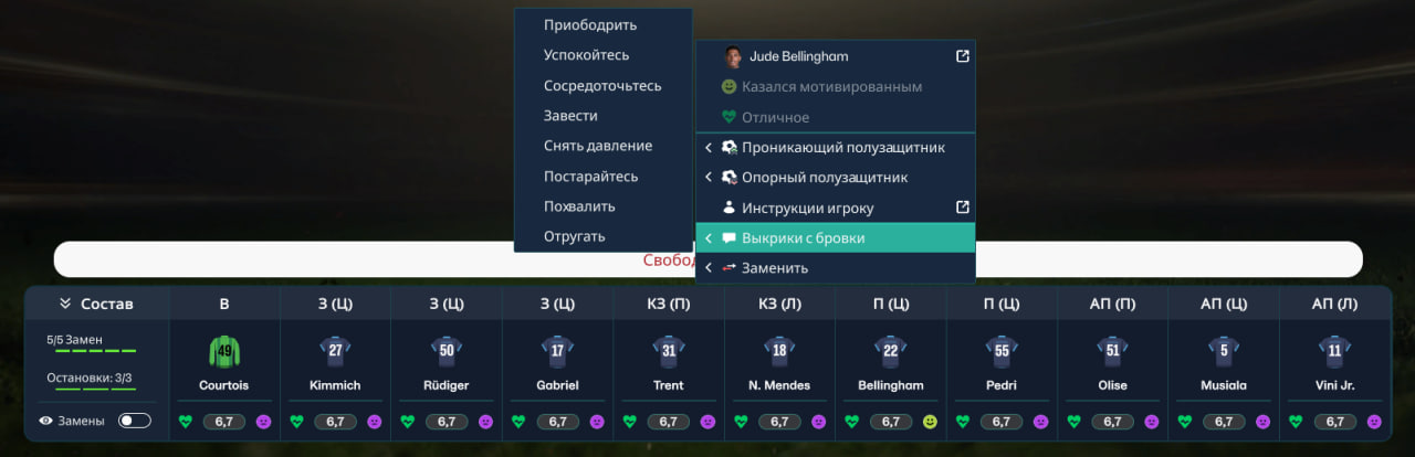 Выкрики - это способ изменения настроения игроков во время матча , использовать вы можете их как общие для всей команды, так и отдельно , индивидуально каждому игроку.