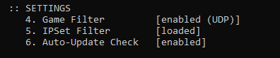 Game Filter [enabled] (выбираем UDP only)