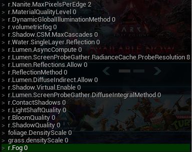 - Fog is one of the main affecters for performance. Setting this to 0 disables fog entirely with exception to a map's baked in fog (See Valguero)