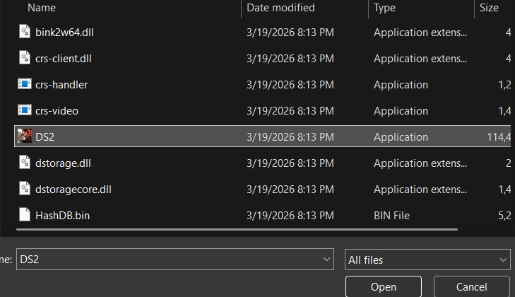 Select all files in the bottom right panel and choose the DS2 application file