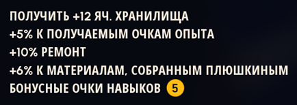 И самое весомое — до 5 дополнительных очков навыков. С этим есть сложность, так как каждое очко навыков стоит 1 млн. кредитов. В момент отправления, стоимость вашего инвентаря и баланс кредитов суммируется, и чтобы получить максимум очков навыков, вам необходимо иметь 5 млн. кредитов.