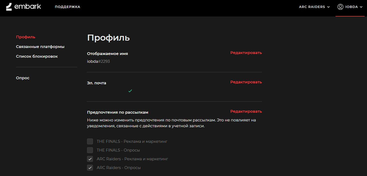 В нем можно сменить игровой ник и привязать сторонние платформы: