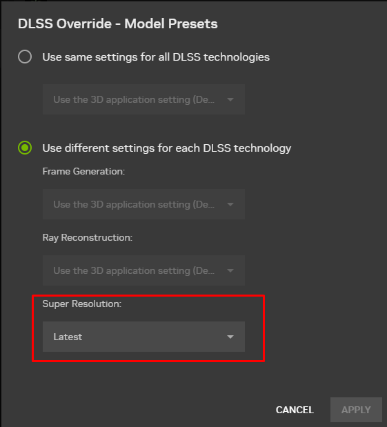 5. In the "Super Resolution" tab change to "Latest" option and click APPLY