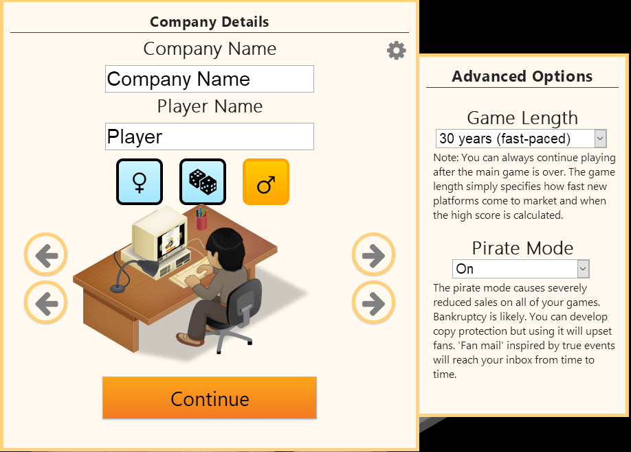 1) New Game - 30 Years - Piracy Mode