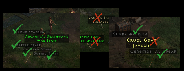 There are hidden (yes, again) SUBCLASSES of items. For example, Necromancer's Wand and Sorceress' Orb both belong to "Staff" Class, but there is a Staff item, too which Class corresponds to it's title.