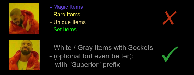 As mentioned above, you have to pay attention to several factors, including item type, weapon class, etc. Now you found the perfect item with the right amount of sockets and the correct type. What if you are about to beat Baal on Normal difficulty, do a couple of farm runs and jump to the Nightmare difficulty in a couple of hours? Here you have to decide whether that Runeword worth sticking in a long run.