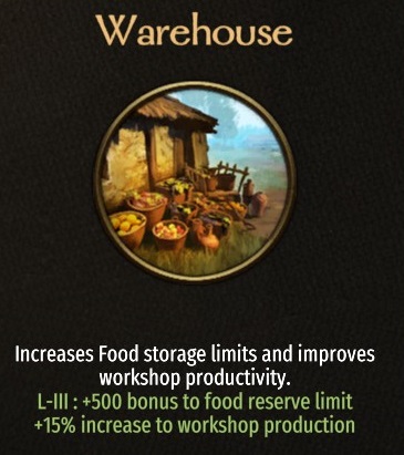 Дают запас прочности, обязательны к постройке. Если вдруг с деревнями будут проблемы, то амбары спасут город от голода. Голод уменьшает Процветание, а значит тормозит его развитие и достижение нашей цели.