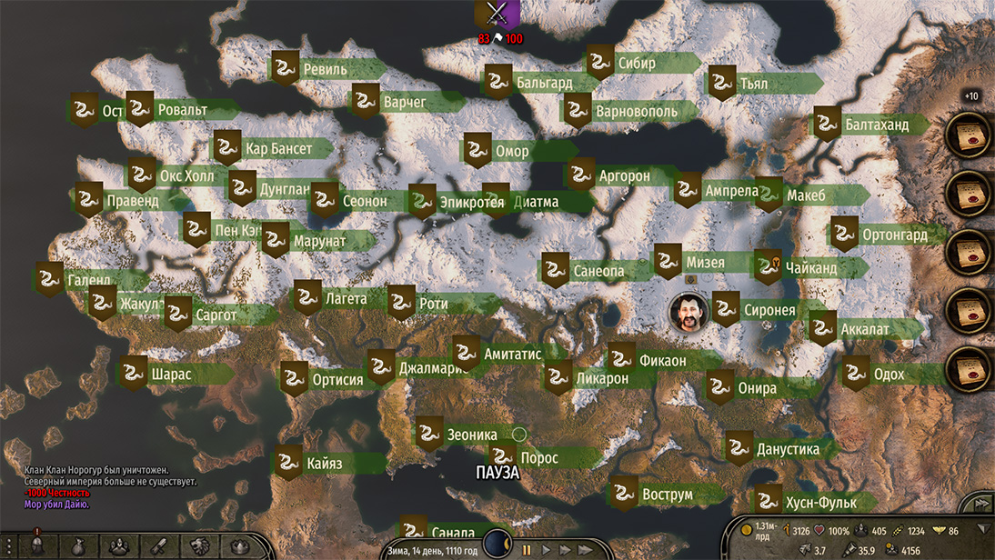 Погоняв по карте последние оставшиеся кланы, в моих руках оказался последний лорд на всю кальрадию. На карте были только Мордор и Северная империя.