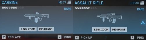 - Оружие с модификациями, зеленое - фиолетовое