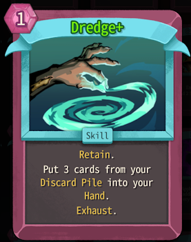 Typically I use this card as a substitute for Graveblast. I don't always upgrade it but it is absolutely worth a consideration. Dredge is perfect for the times when Graveblast is not available, especially when it is upgraded. Retain (only available on Dredge+) is a very good feature that Graveblast does not have, meaning we can use it when it would make the most difference to us in any encounter. We can also use it to enhance Graveblast loops but it gets complicated.