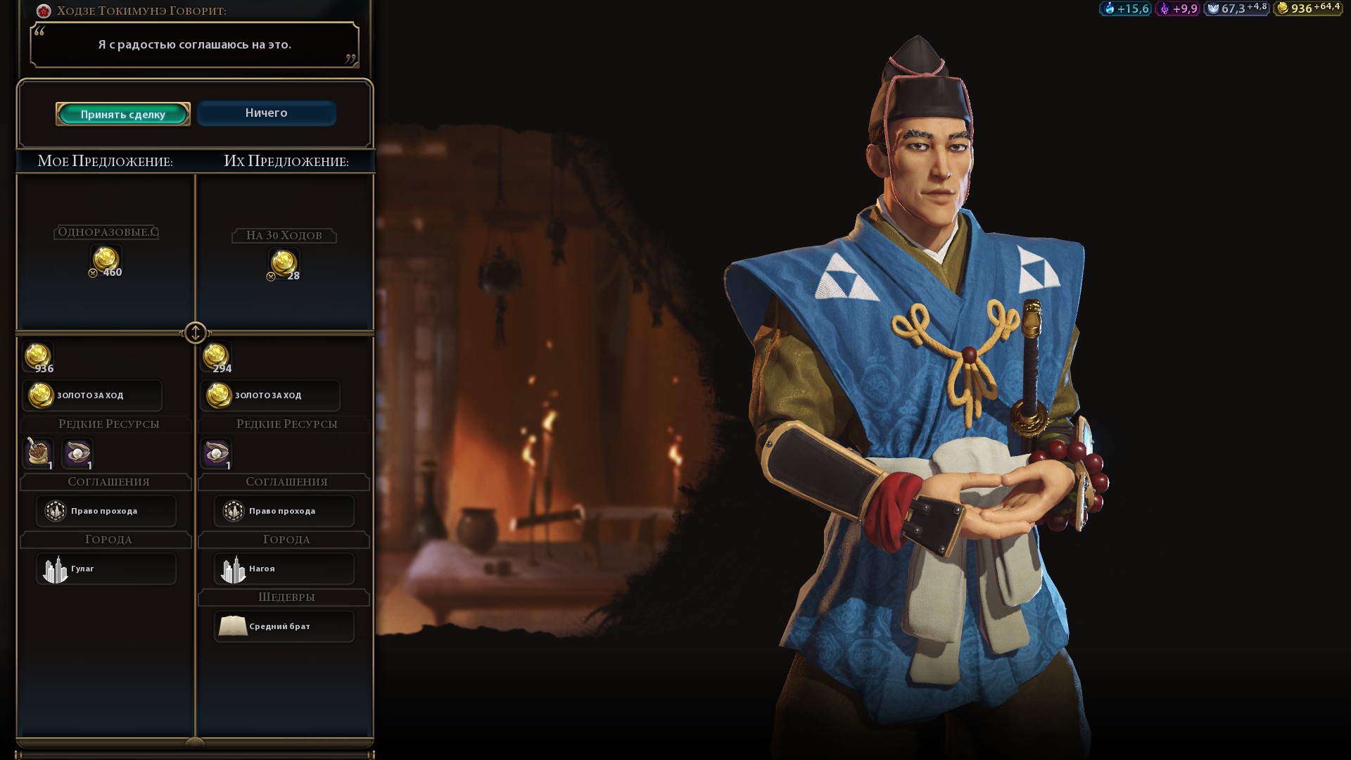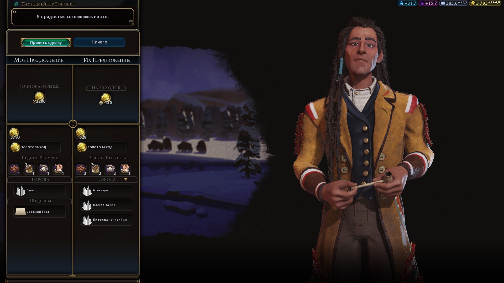 Меня такой расклад не устраивал, армии - нет, толку от прокачки через науку и от грантов - нет, потому что этот подлый читер просто наколдовал себе сверхдержаву и орал в голосину с моей страны третьего мира. Я дал ему кредит: за каждую выплату в 14 золота он давал мне одну единицу золота, но зато на 30 ходов.