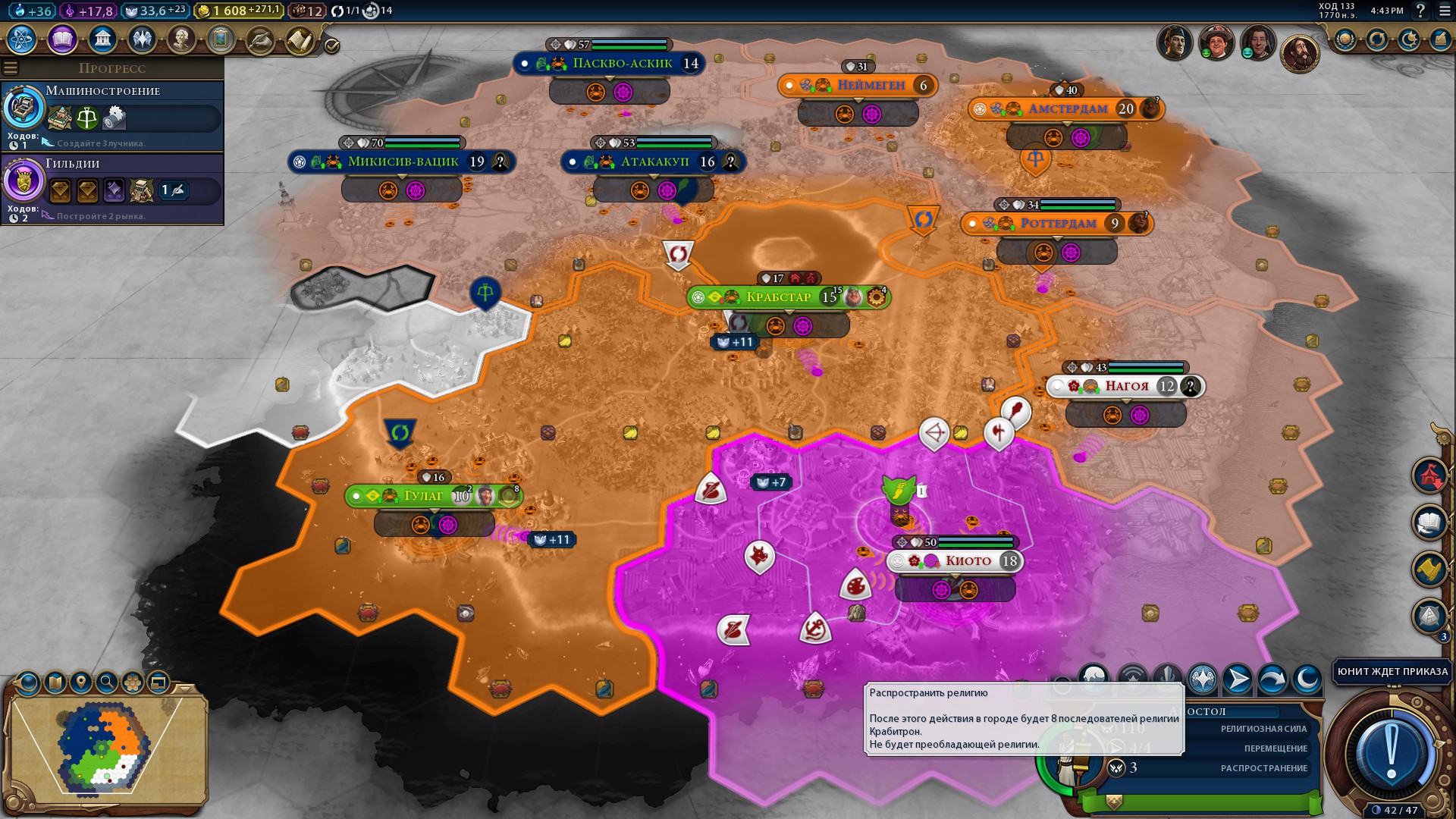 Я всё ещё не понимал силу данной стратегии, поэтому развивал науку и религию (религия нужна для усиления производственных мощностей) планируя военную победу.