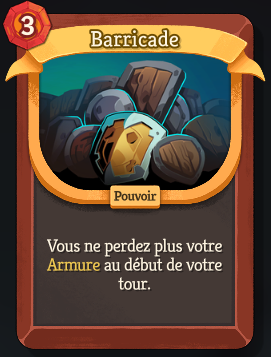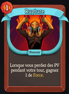Mais si vous avez Barricade ET Rupture dans le même deck, permettez moi de vous dire que votre deck il pue, déjà parceque ça fait trop de pouvoir qui ne font rien le tour jouer, et donc sur un coup de malchance vous bouffer 30 de dégâts tour 1 dans l'un des combats d'élites de l'acte 3, et aussi parceque si votre plan de jeux c'est d'avoir de l'armure, pourquoi vous voulez de la force ?